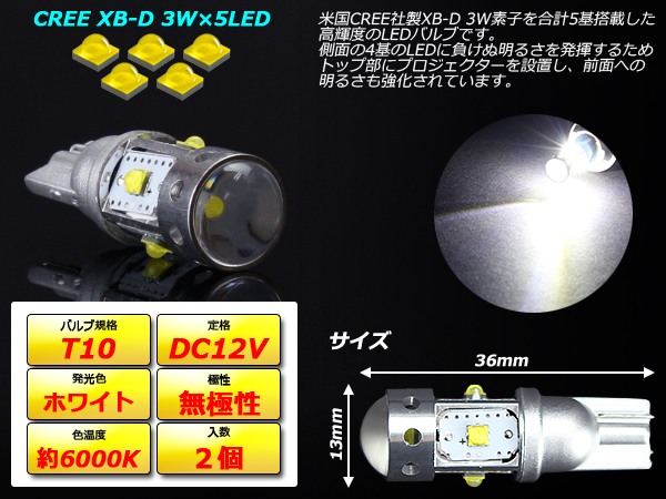 CREE XB-D 3W×5LED T10ホワイトウエッジバルブ