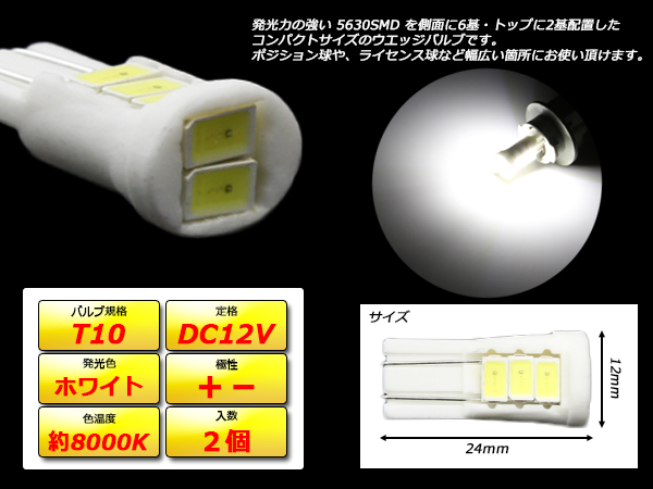 5630SMD×6 T10 ホワイト ウエッジバルブ