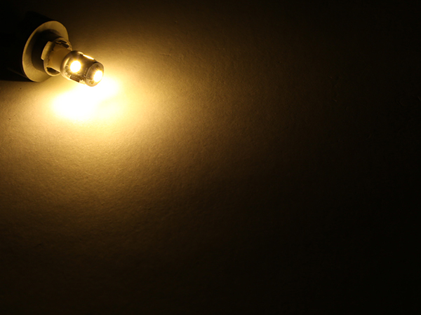 発光力の強い 5050SMD を側面に4基・トップに1基配置したコンパクトサイズのウエッジバルブです。