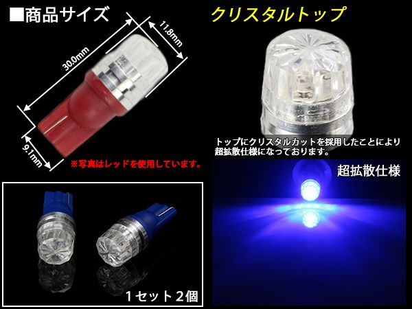 超拡散クリスタルトップリフレクター T10ハイパワー2W ブルー