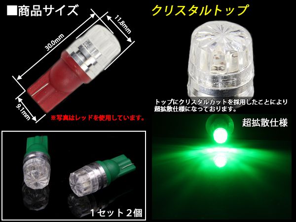 超拡散クリスタルトップリフレクター T10ハイパワー2W グリーン