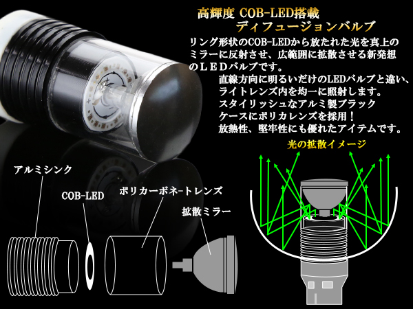 直線方向に明るいだけのLEDバルブと違い、ライトレンズ内を均一に照射