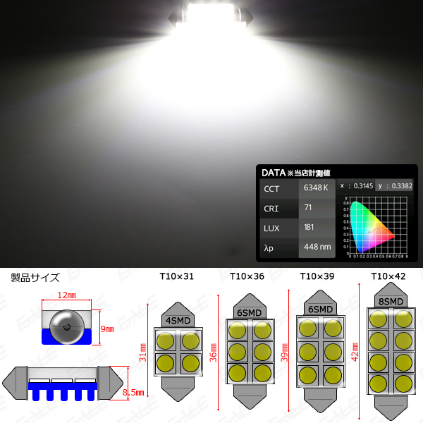 1球あたり、24ルーメンの光を放つ、高性能3chip 5050SMDを使用したフェストンバルブです。