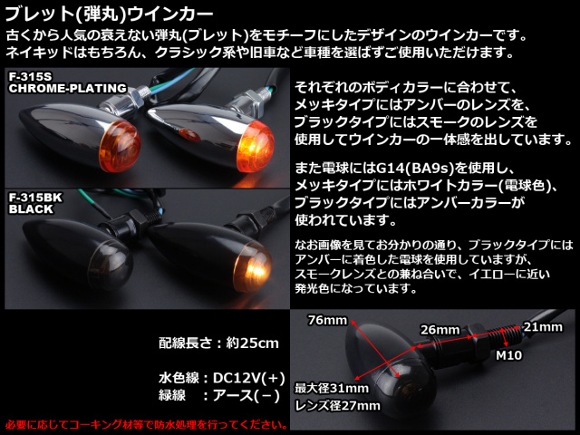 古くから人気の衰えない弾丸(ブレット)をモチーフにしたデザインのウインカーです。