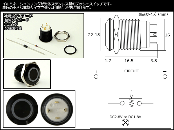 | ■ LEDイルミ内蔵 プッシュスイッチ 12V用 |