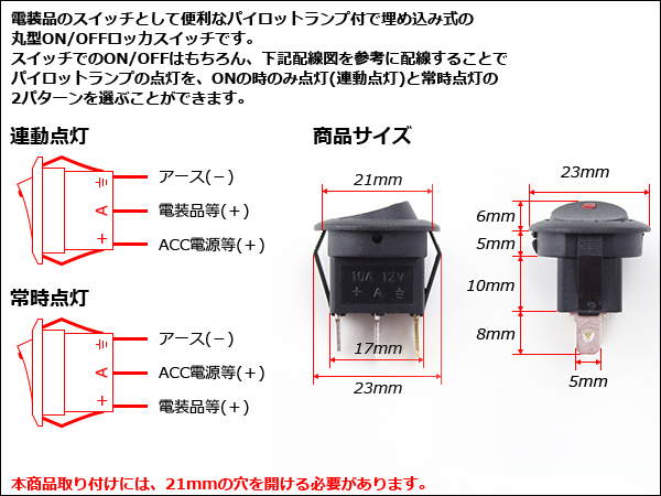 | ■ 本商品取り付けには、21mmの穴を開ける必要があります。 |