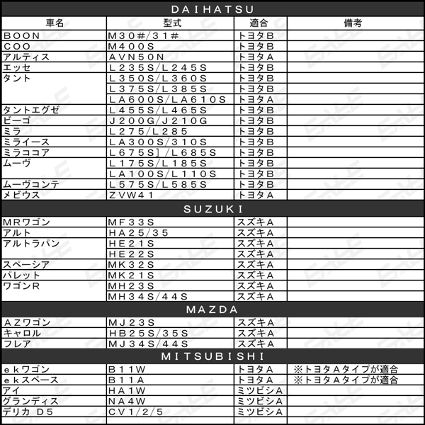 記載車種は一例です。適合多数のため、取付可能かは製品サイズを目安にご判断下さい。