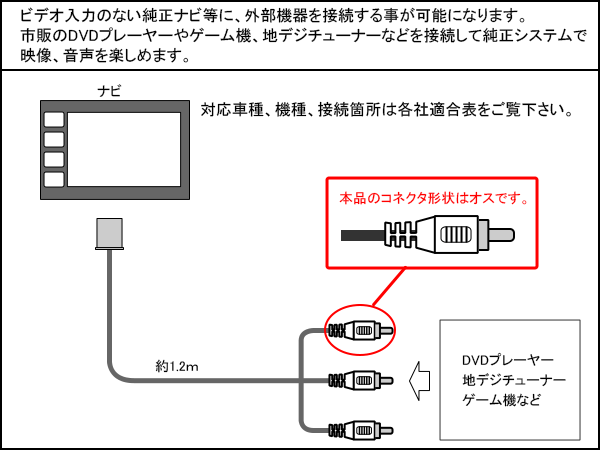 ビデオ入力のない純正ナビ等に、外部機器を接続する事が可能 。