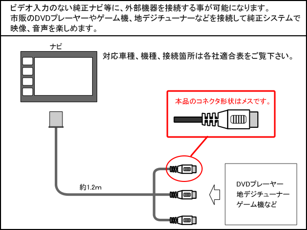 ビデオ入力のない純正ナビ等に、外部機器を接続する事が可能。