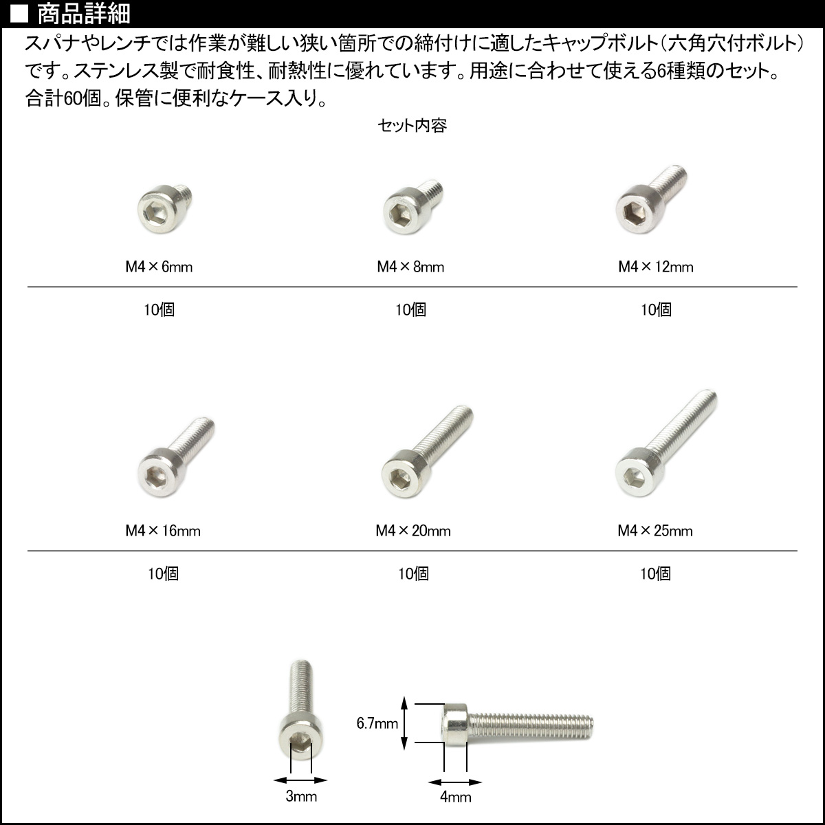 ステンレス製 M4 キャップボルト(六角穴付ボルト) 6種セット