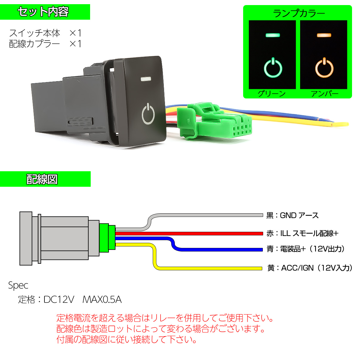 | ■スペック:DC12V専用 MAX0.5A |