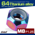 金属の中でも軽量、高剛性、対候性に優れた64チタン合金(Ti6Al-4V)を採用した六角ナット(セレート無し)です。