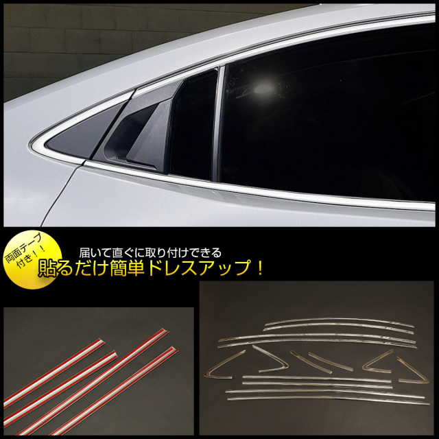 60系プリウスのサイドウインドウトリムに両面テープで取り付けするメッキモールキットです。