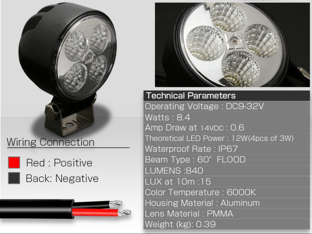 トラック・建設機械・船舶等の作業灯やサーチライト、バックランプに最適な小型軽量タイプのワークライト。