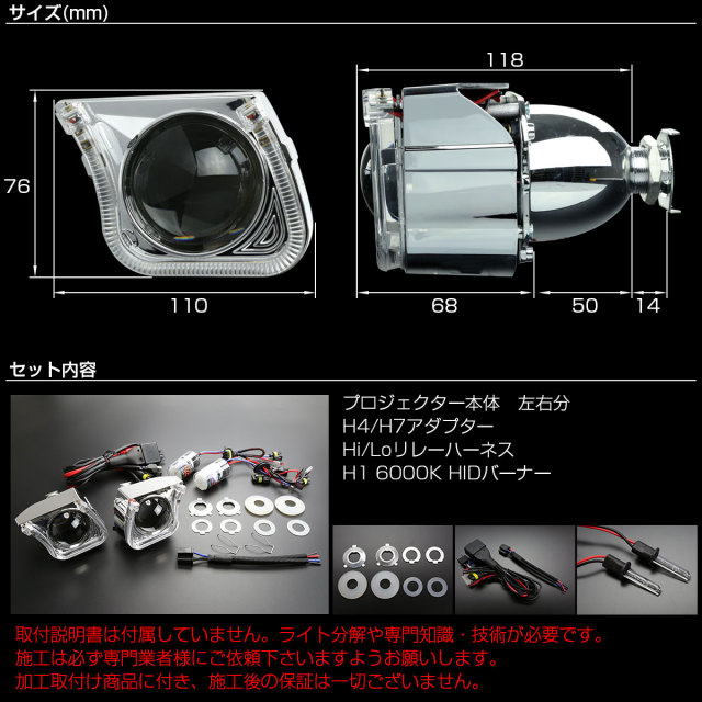 | ※HIDバラストは付属していません。別途35Wバラストが2個必要です。取付施工には、専門知識が必要です。施工は必ず専門業者様にご依頼下さいますようお願いします。加工取付け商品に付き、施工後の保証は一切ございません。取付け前に動作確認を十分行って下さい。 |