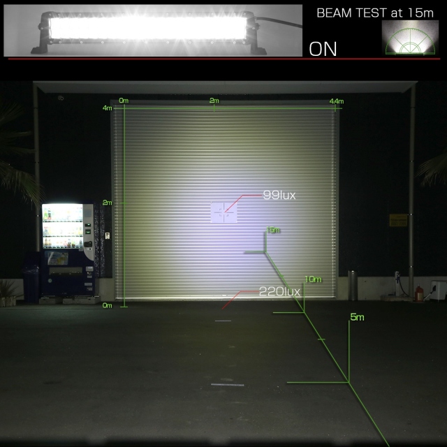 中央部にはより遠くまで光を照射する30度スポットを、両サイド部には60度ワイド型を配置コンボパターンのLEDライトバーです。