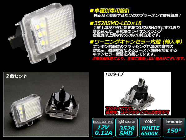 既存の純正ランプと交換するだけの車種別専用設計のライセンスランプ