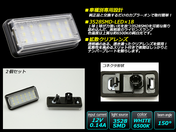 既存の純正ランプと交換するだけの車種別専用設計のライセンスランプ