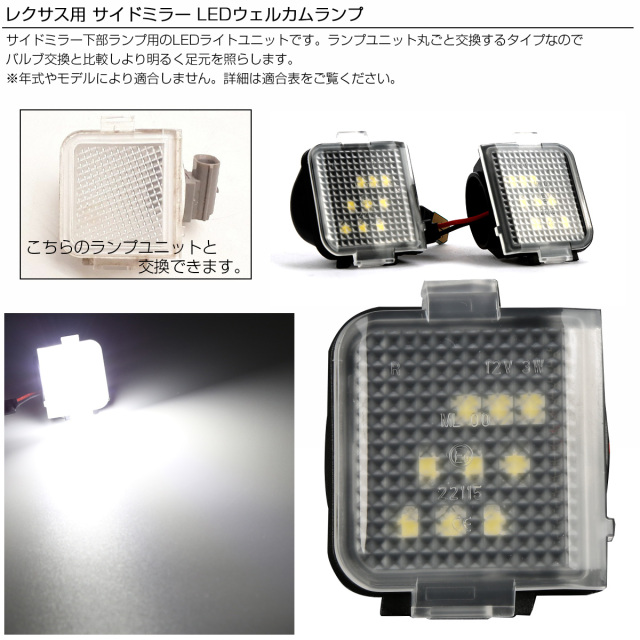 サイドミラー下部のウェルカムランプを丸ごと交換しLED化できるライトユニットです。