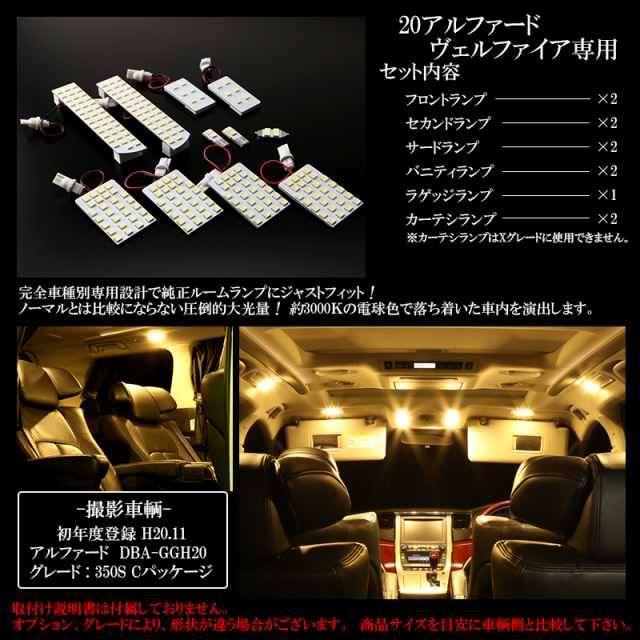 | ■適合車種 20系アルファード/20系ヴェルファイア 適合型式:ANH20/ANH25/GGH20/GGH25/ATH20 |