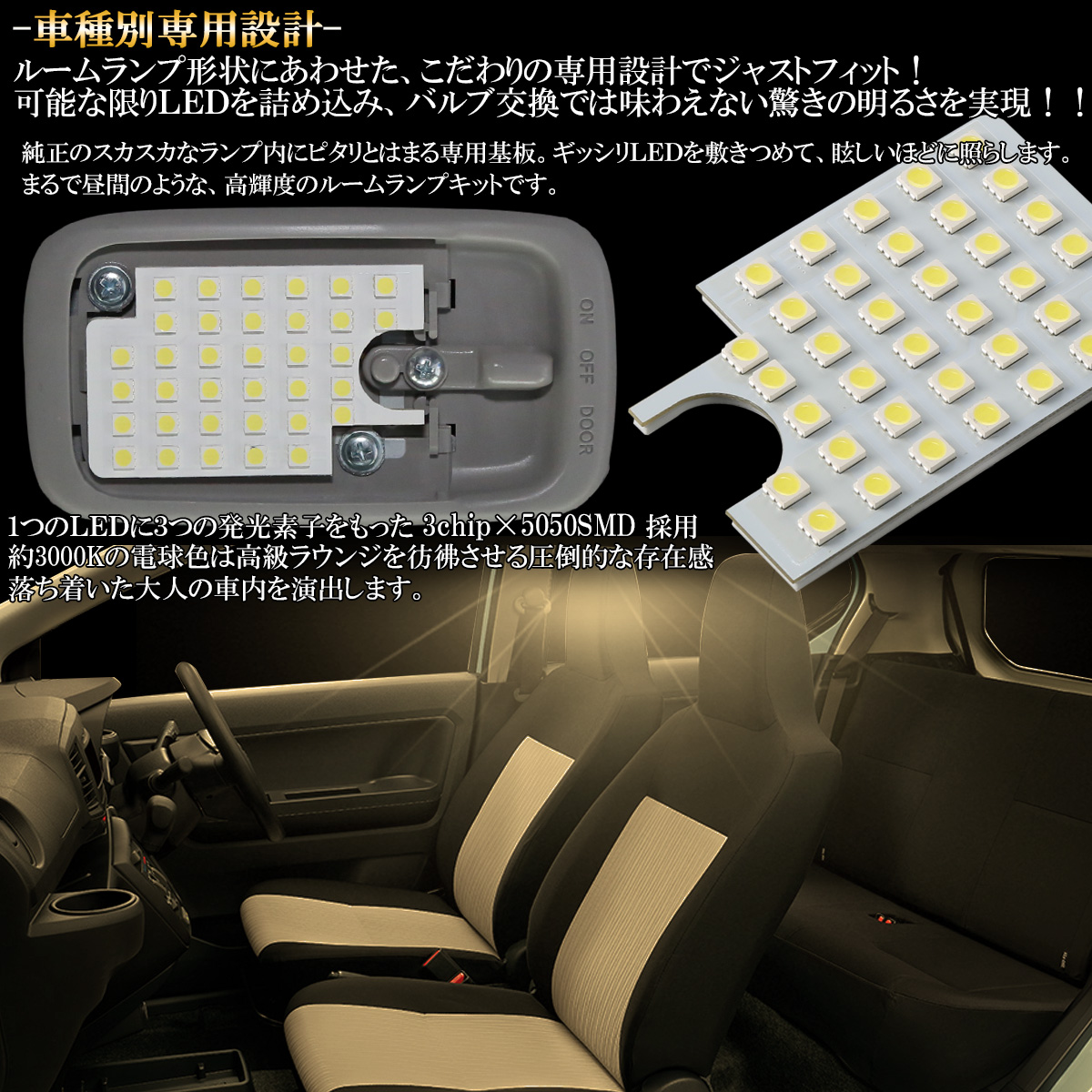 ルームランプ形状にあわせた、こだわりの専用設計でジャストフィット。