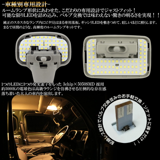ルームランプ形状にあわせた、こだわりの専用設計でジャストフィット。