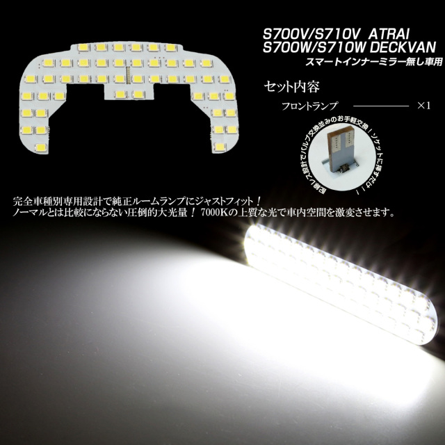 | ■適合車種:S700系 アトレー スマミラ無し車 S700V/S710V アトレー S700W/S710W アトレーデッキバン スマートインナーミラー無し車用 |
