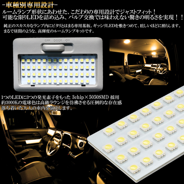 ルームランプ形状にあわせた、こだわりの専用設計でジャストフィット。