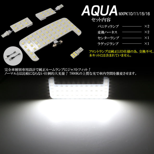 LED ルームランプ MXPK10 11 15 16 アクア PK10系 専用設計 4点セット 純白光 7000K ホワイト R-497 【メール便可】