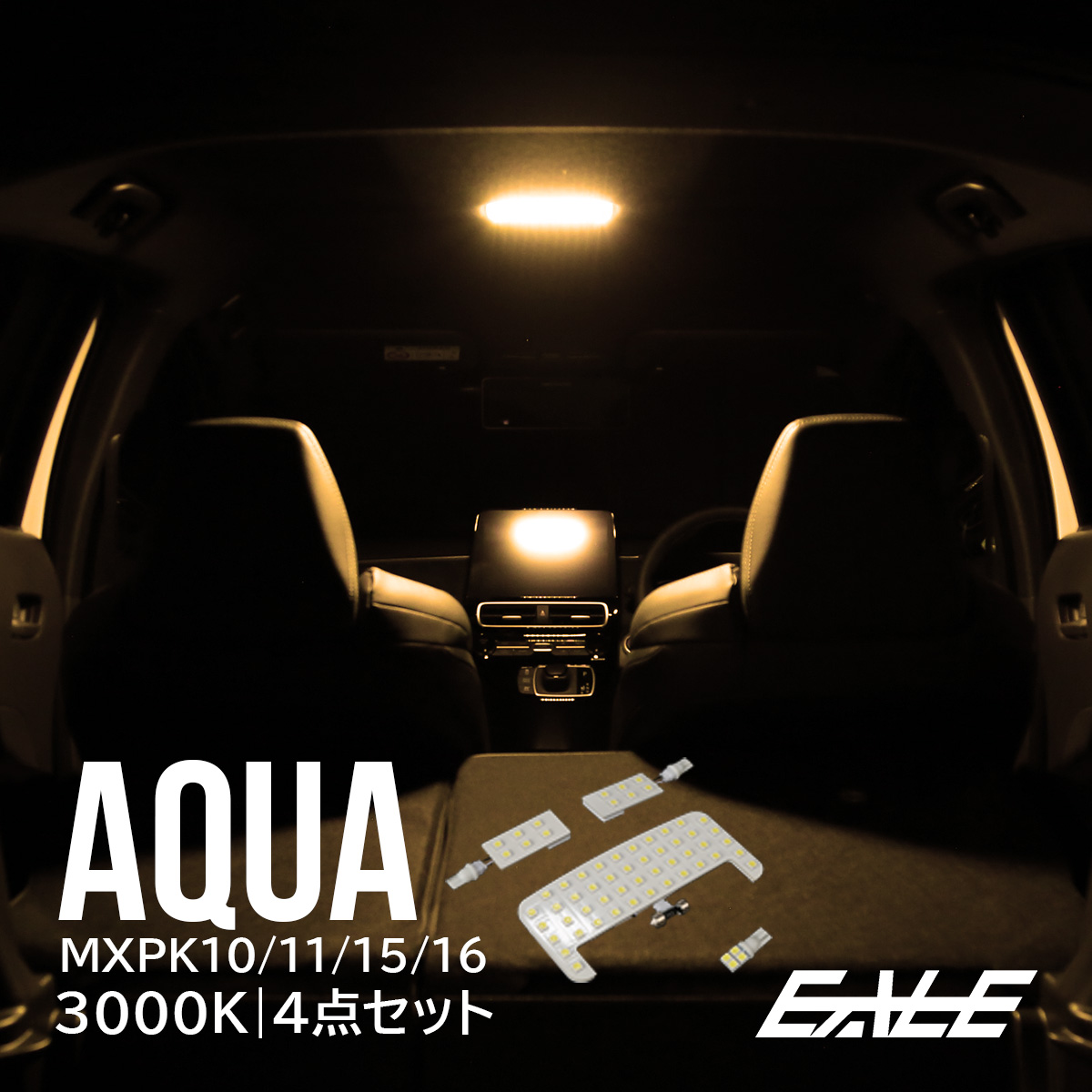 LED ルームランプ MXPK10 11 15 16 アクア PK10系 専用設計 4点セット ウォームホワイト 電球色 3000K R-498 【メール便可】