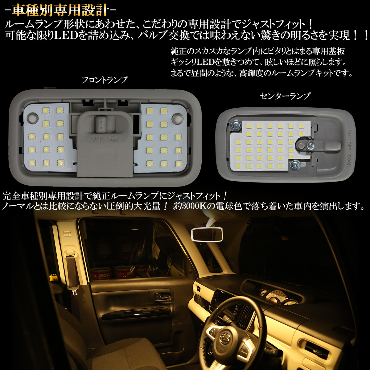 ルームランプ形状にあわせた、こだわりの専用設計でジャストフィット!