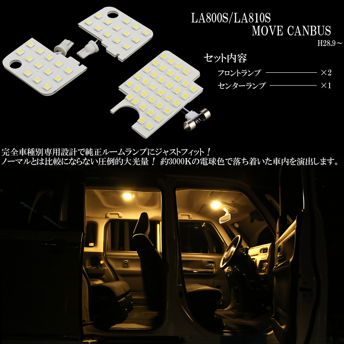LA800S LA810S ムーヴ キャンバス LED ルームランプ 専用設計 3000K 電球色 ウォームホワイト 取説付き R-506 【メール便可】