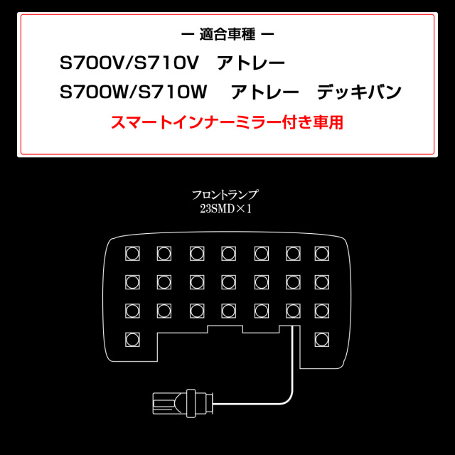 | ■適合車種:S700系 アトレー スマミラ付き車 S700V/S710V アトレー S700W/S710W アトレーデッキバン スマートインナーミラー付き車用 |