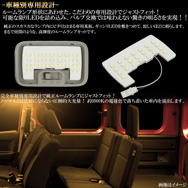 約3000Kの電球色で落ち着いた大人の車内空間を演出します。