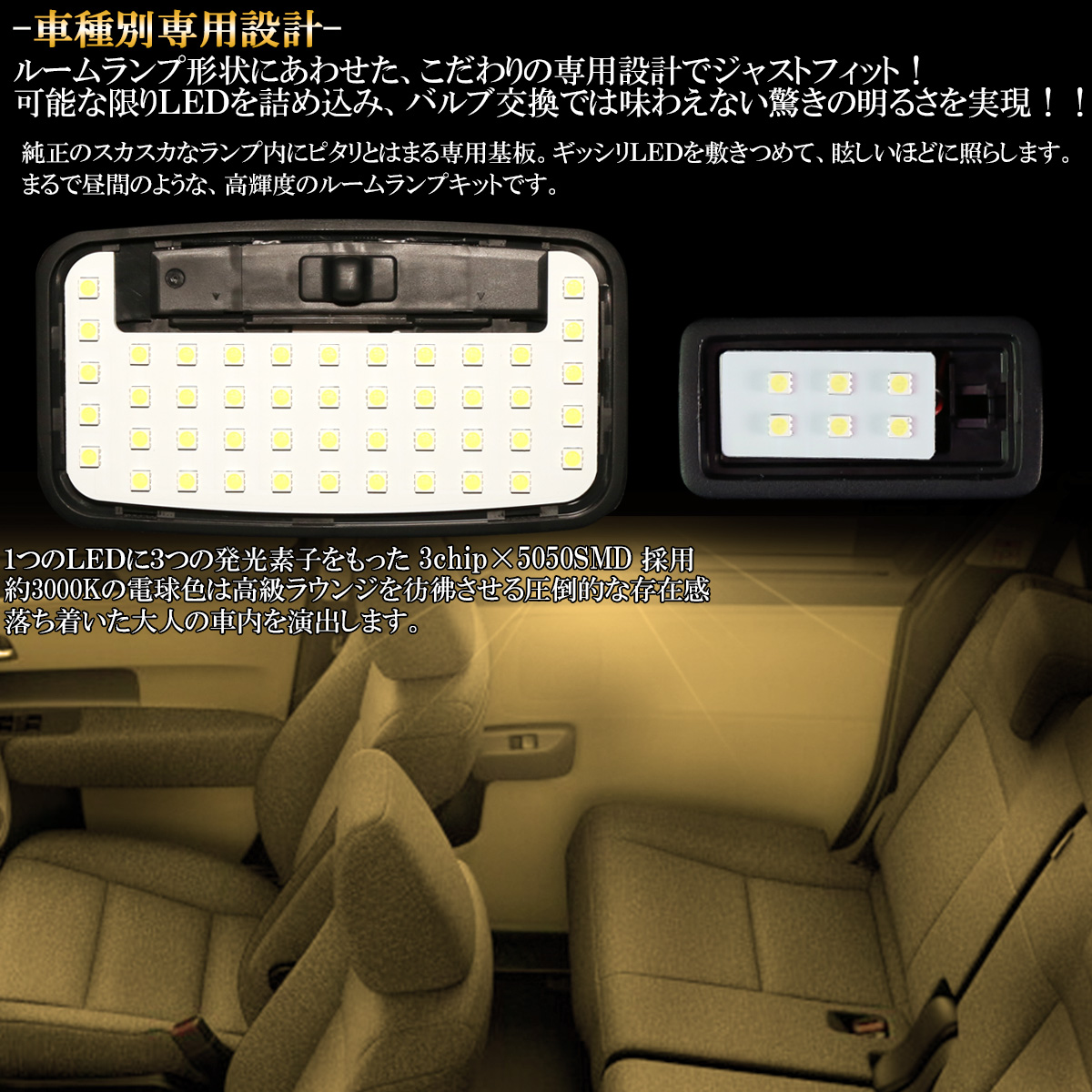 ルームランプ形状にあわせた、こだわりの専用設計でジャストフィット!