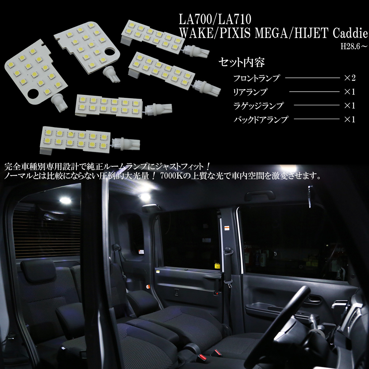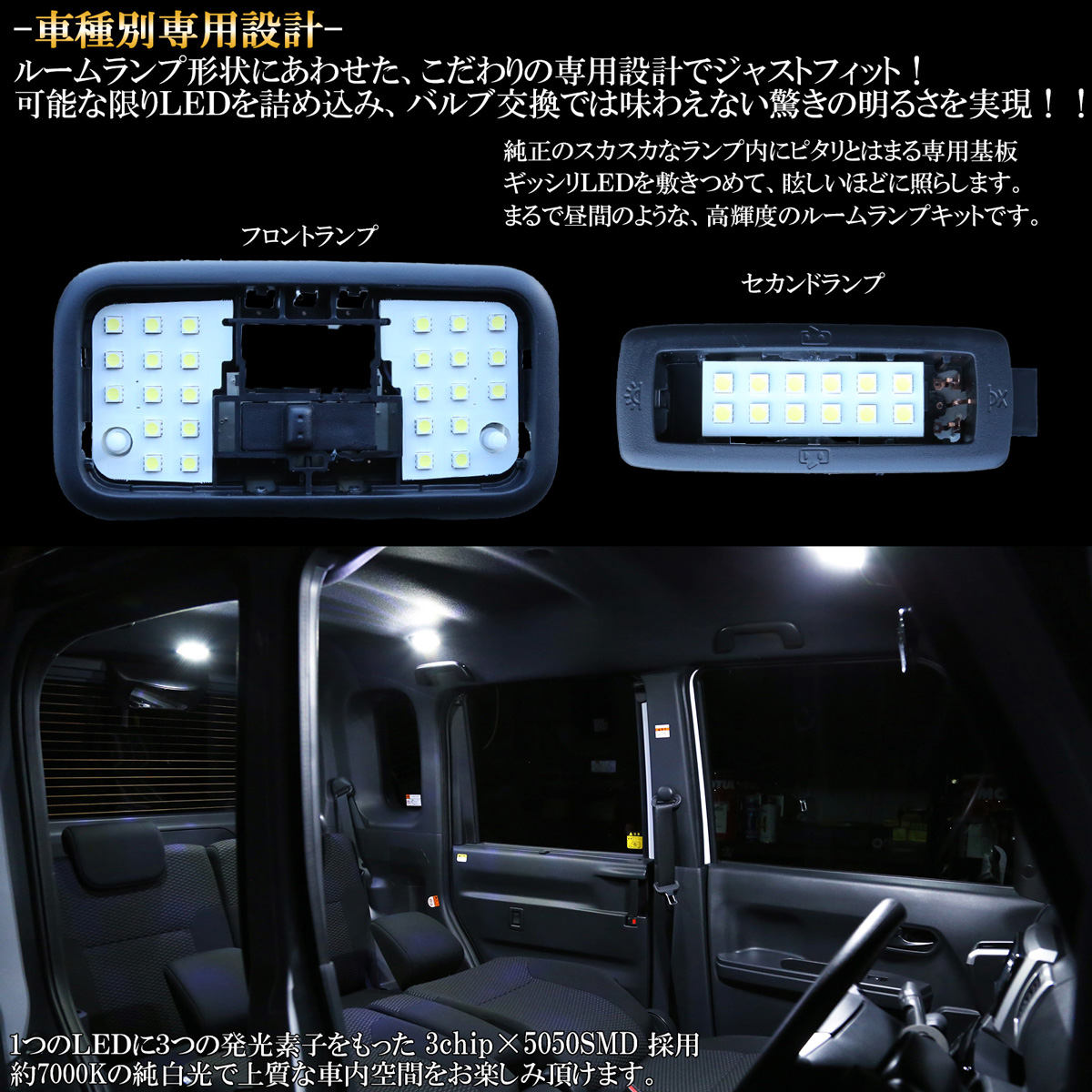 約7000Kの純白光で極上の車内空間を演出します。