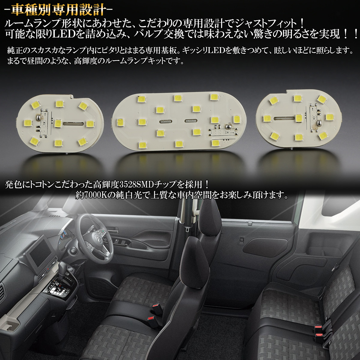 約7000Kの純白光で極上の車内空間を演出します。