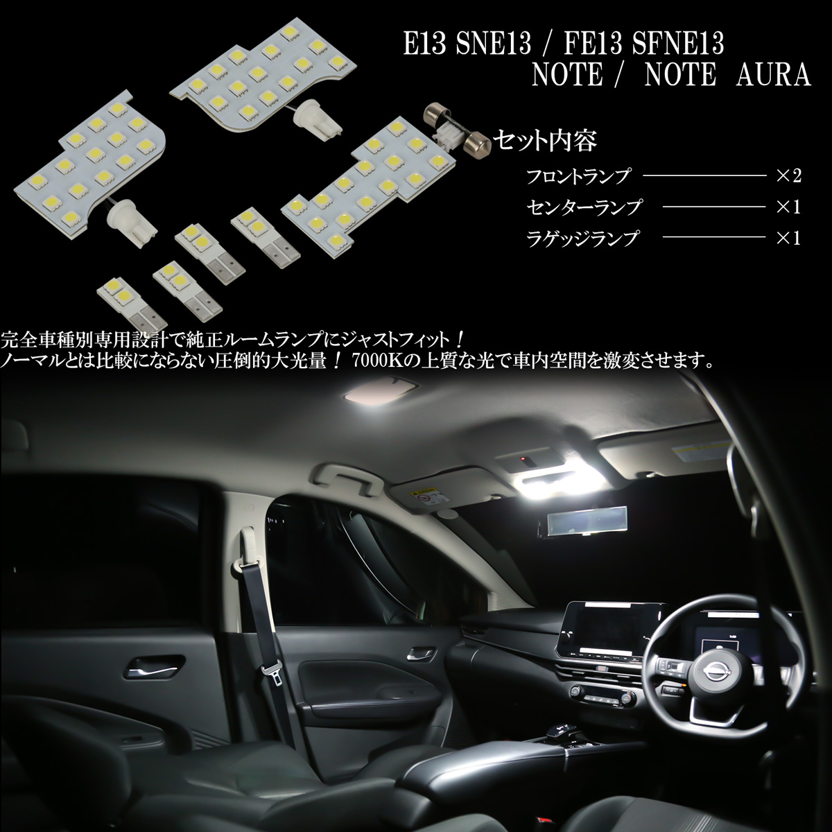 約7000Kの純白光で極上の車内空間を演出します。
