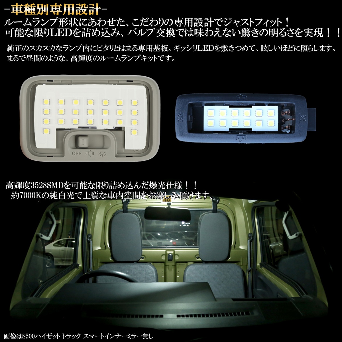 約7000Kの純白光で極上の車内空間を演出します。