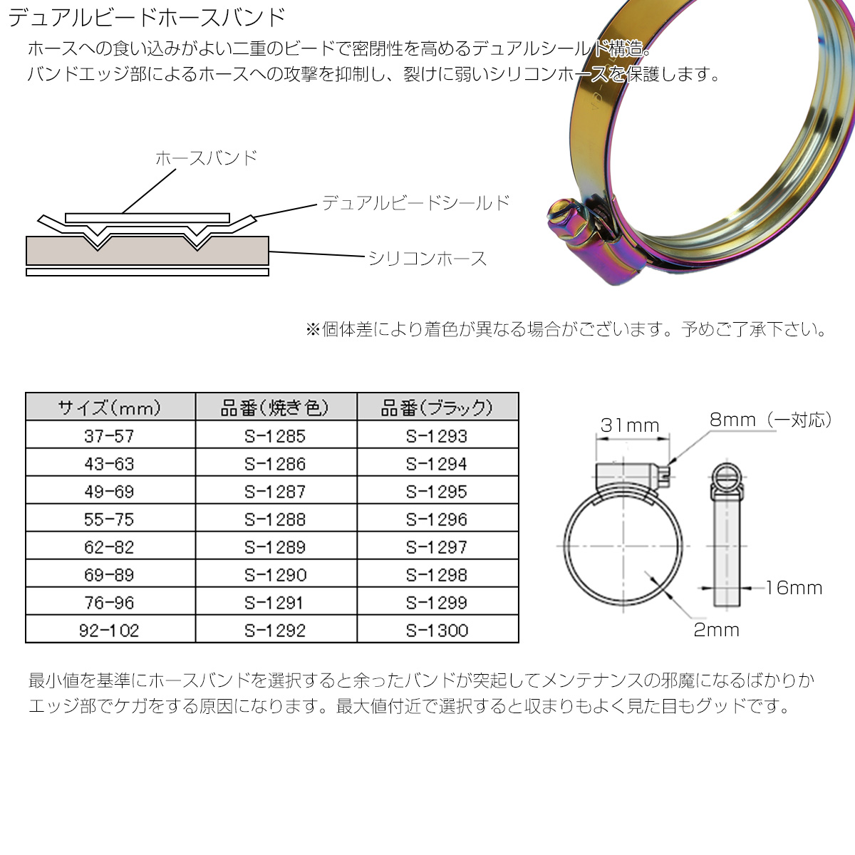 | ■品番/適合径 S-1285/37-57mm S-1286/43-63mm S-1287/49-69mm S-1288/55-75mm S-1289/62-82mm S-1290/69-89mm S-1291/76-96mm S-1292/92-102mm |