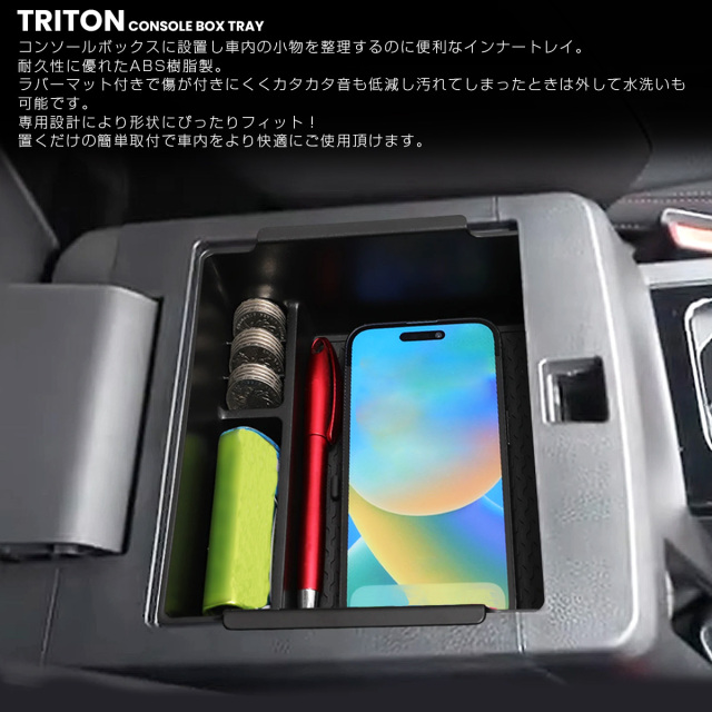 コンソールボックスに設置し車内の小物を整理するのに便利なインナートレイ。
