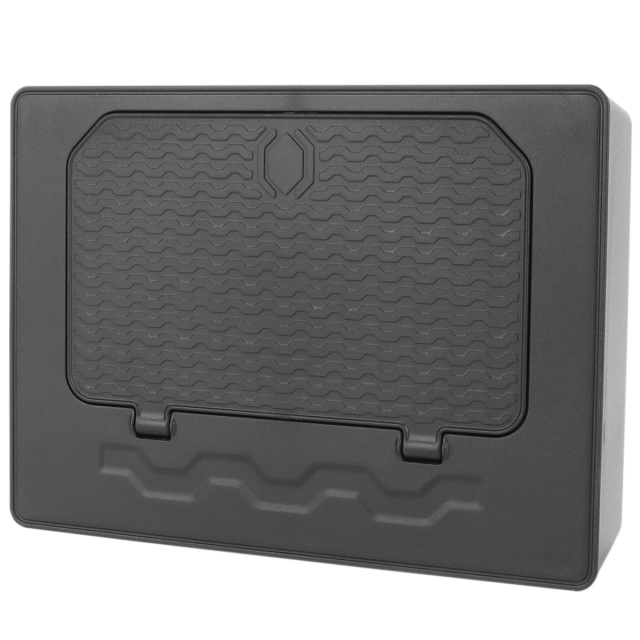 アームレスト裏のデッドスペースを小物入れとして有効活用できる収納ボックス。