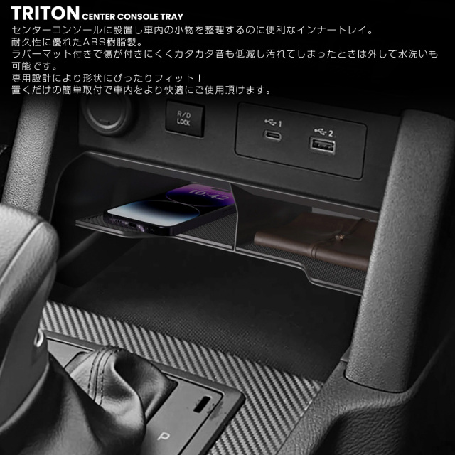 センターコンソールに設置し車内の小物を整理するのに便利なインナートレイ。