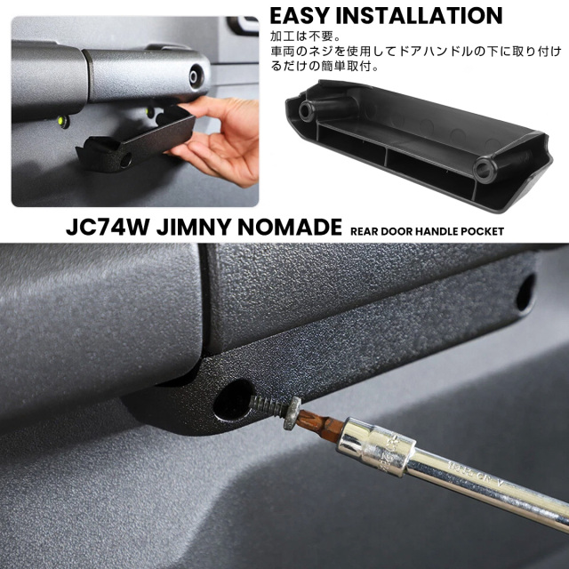 車両のネジを使用してドアハンドルの下に取り付けるだけの簡単取付で車内をより快適にご使用頂けます。