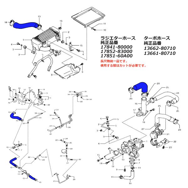 JA11ジムニー シリコンターボホース2点 インテーク用 ( S-134 )