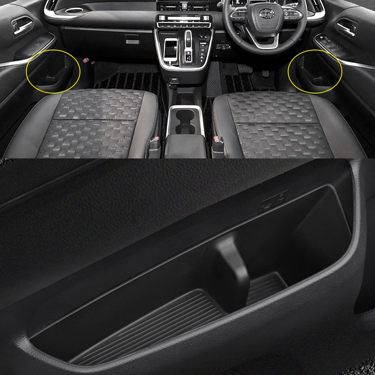 フロントドアにあるポケット、カップホルダーに設置し車内の小物を整理するのに便利なインナートレイ。