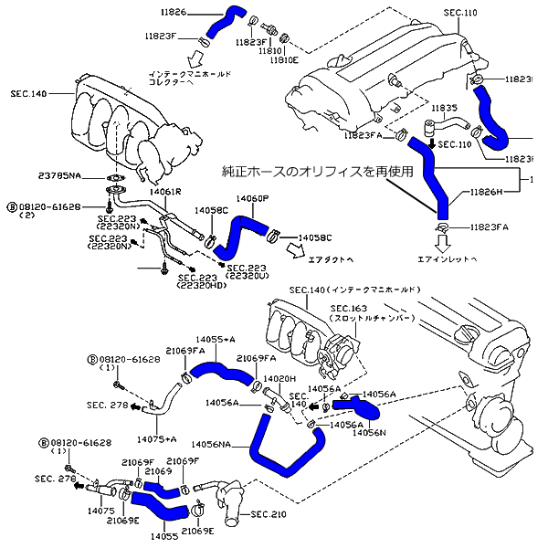 耐候性・耐熱性に優れたシリコンホースに交換する事により、さらに過酷な条件下でも確かな信頼性を得る事ができます。
