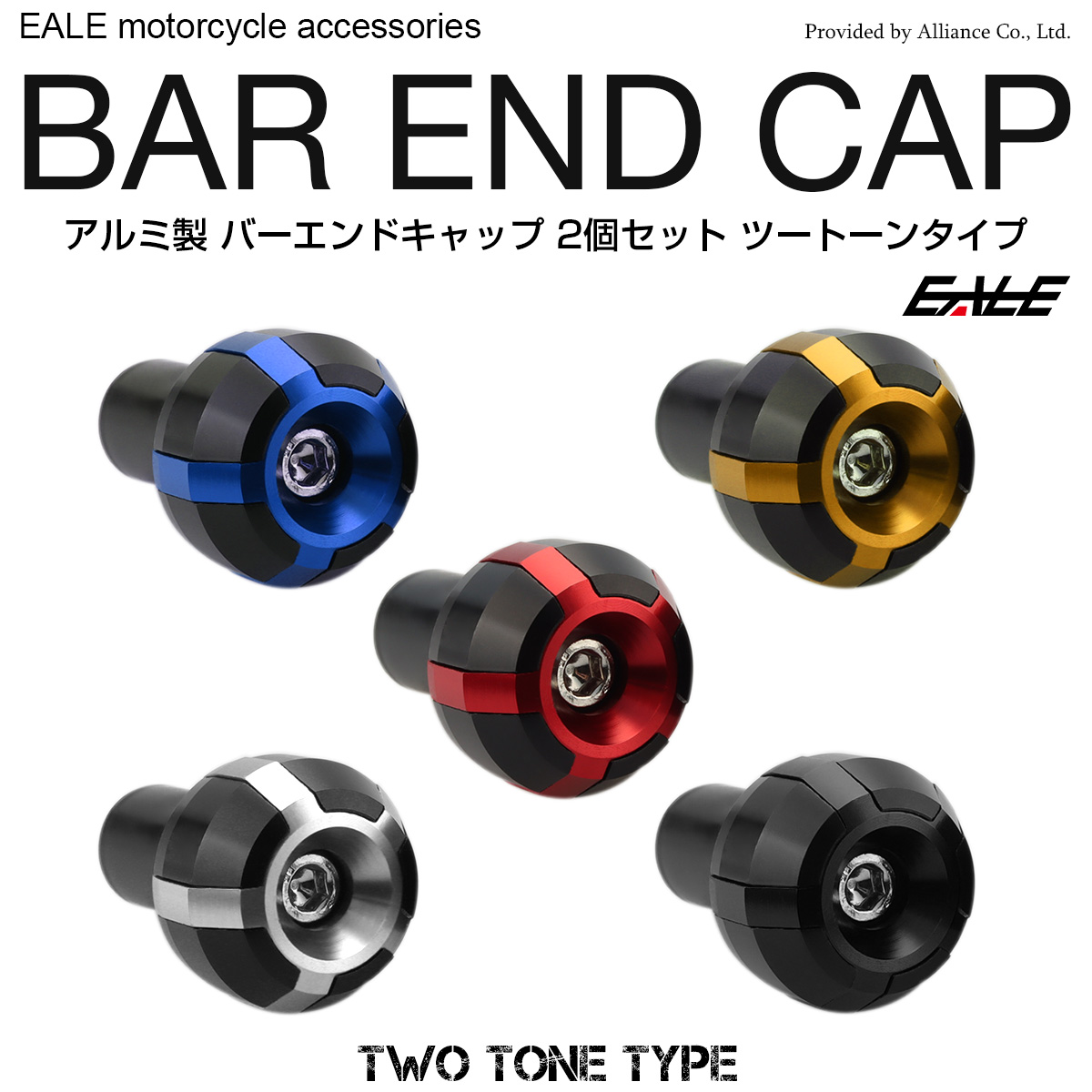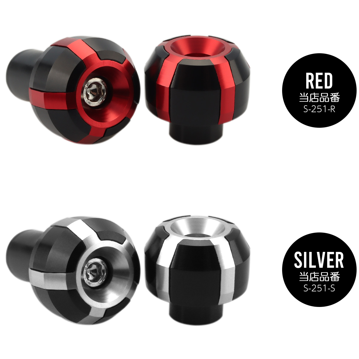 2色のアルミパーツを組み合わせたバーエンドキャップ。