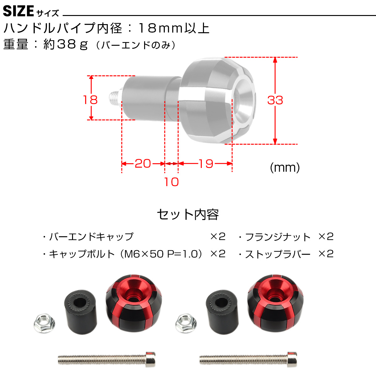 | ■適合:ハンドルパイプ内径18mm以上 |