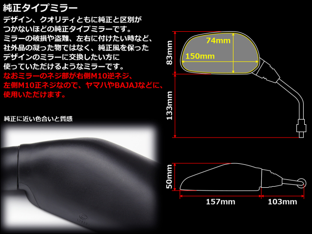 | ■適合車種:右ミラーM10逆ネジ使用のヤマハやBAJAJなど |
